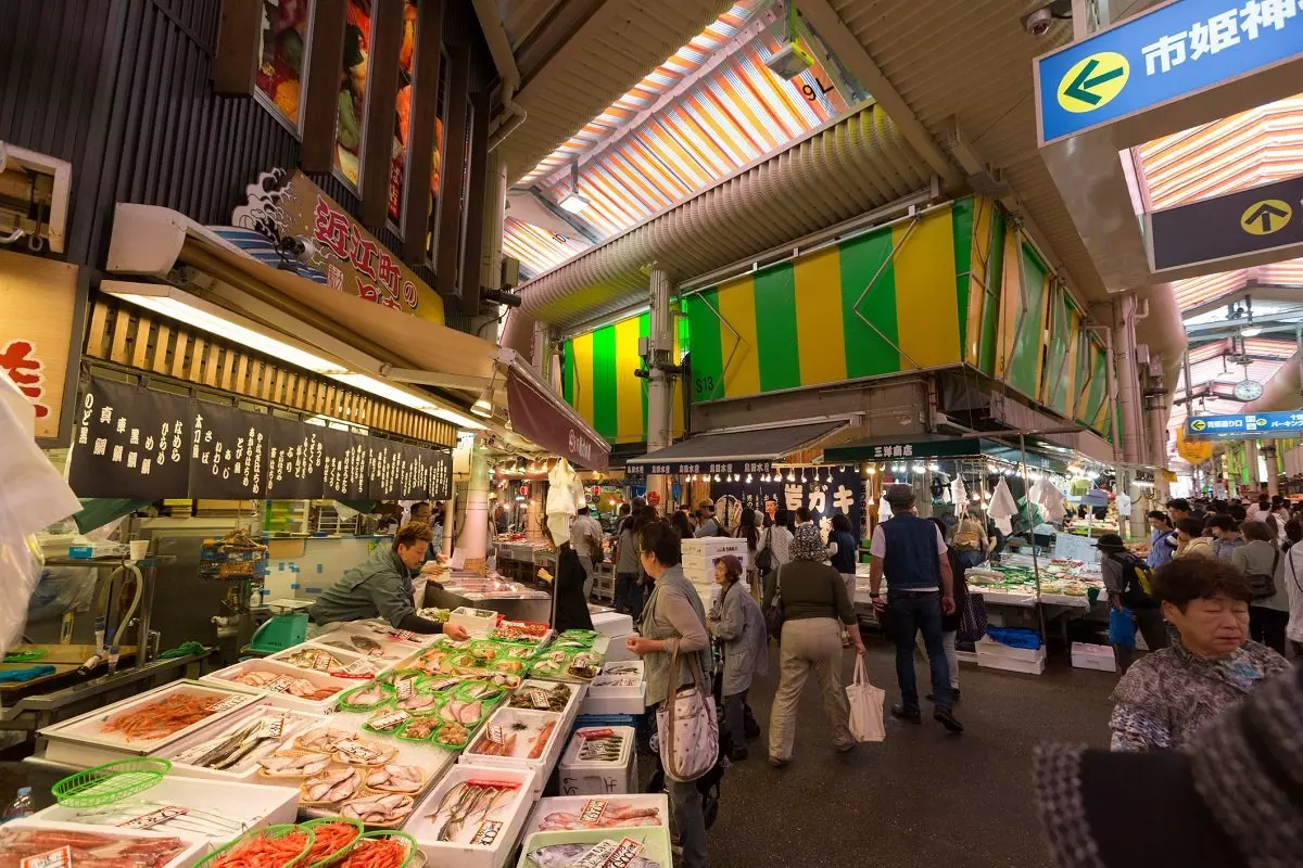 Sobald sich der Hunger meldet, gehen Sie am besten zum geschäftigen Nishiki Food Market. Dort probieren Sie von herzhaften Streetfood-Snacks bis hin zu raffinierten Delikatessen alles aus und tauchen ganz in die lebhafte Alltagsszenerie ein, die Kyoto ebenso auszeichnet.
