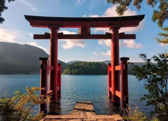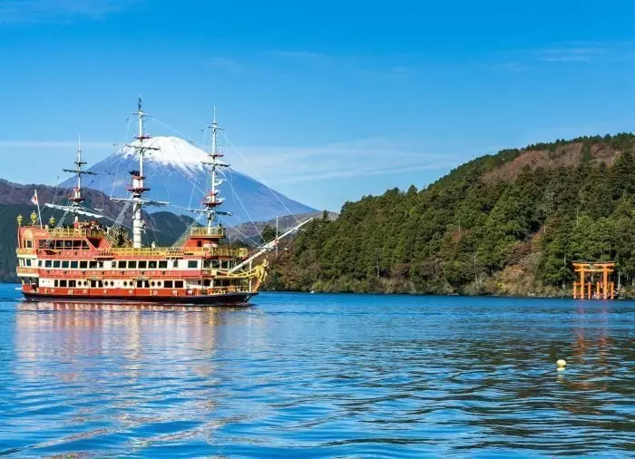 Nach der Ankunft an der Talstation Togendai gehen Sie an Bord eines Schiffes und fahren über den malerischen Ashi-See. Vor 3.000 Jahren entstand durch einen Vulkanausbruch jener Krater, in dem heute der wunderschöne Kratersee liegt. Vom Schiff aus können Sie die herrliche Aussicht auf das Wasser und die umliegenden Berge am See genießen.