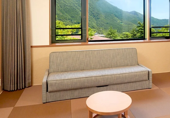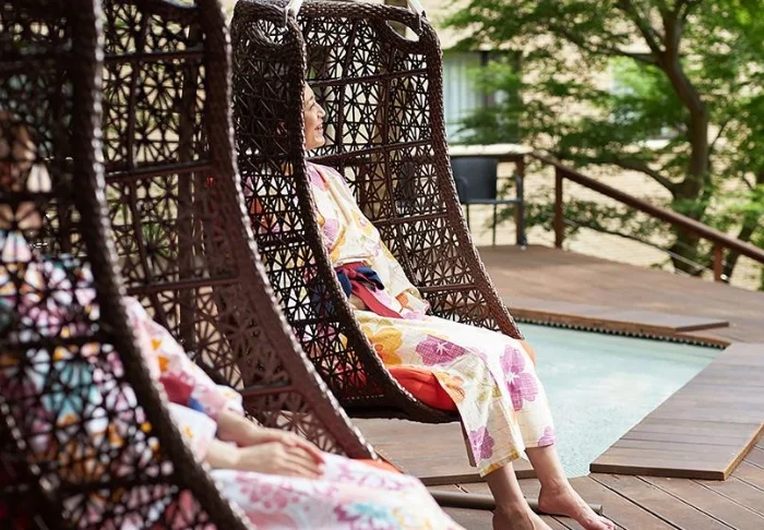 Morgens oder abends können Sie den traditionellen Yukata-Kimono anziehen und den Wellnessbereich besuchen, wo Sie verschiedene Massagen und Gesichtspflegebehandlungen bekommen können.