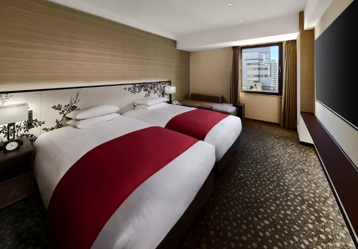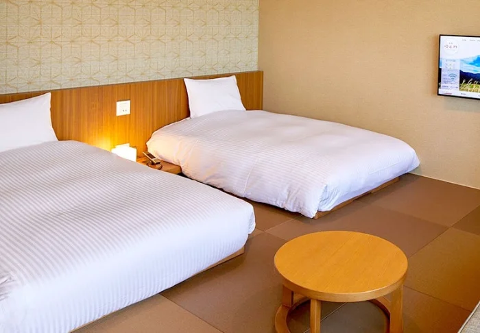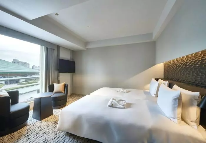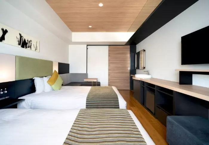 Die Zimmer sind gut ausgestattet und geräumig (27m2), was in Japan nicht an vielen Orten üblich ist. Alle Zimmer verfügen über Klimaanlage, WLAN, Wasserkocher sowie TV und Telefon. Es gibt auch einen Schreibtisch und einen kleinen Sitzbereich. Die Badezimmer sind mit Badewanne und Dusche sowie Haartrockner und kostenlosen Toilettenartikeln ausgestattet.