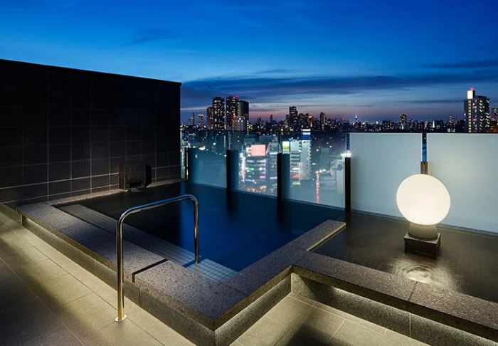 Auf der obersten Etage des Hotels befindet sich der beliebte Wellnessbereich mit großen Fenstern, die einen Blick über Tokio bieten – eine ruhige Oase inmitten der geschäftigen Stadt. Hier können Sie ein traditionelles japanisches Bad genießen und zur Ruhe kommen.