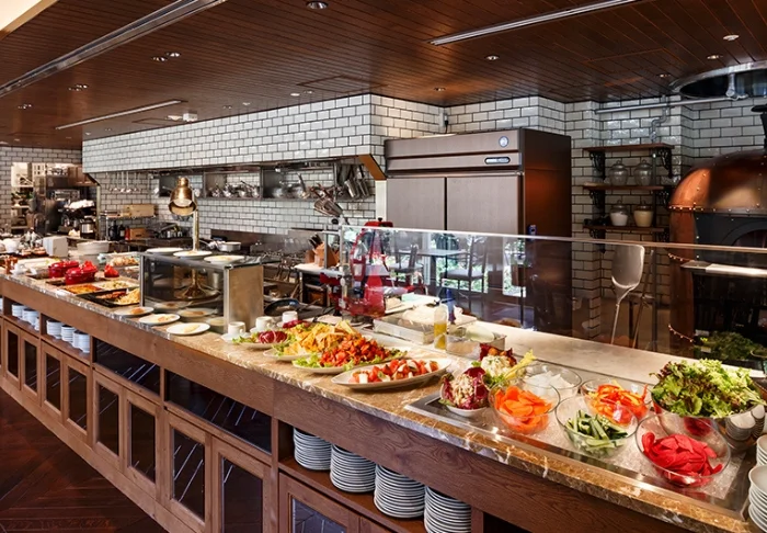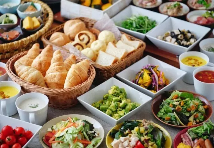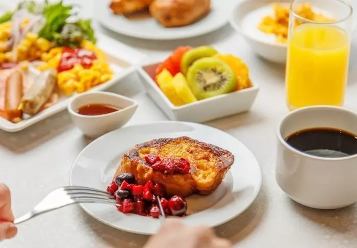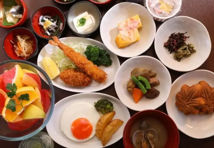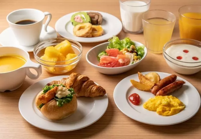 Bevor das Abenteuer des Tages beginnt, können Sie das Buffet im Frühstücksrestaurant des Hotels genießen und aus europäischen und japanischen Gerichten wählen.