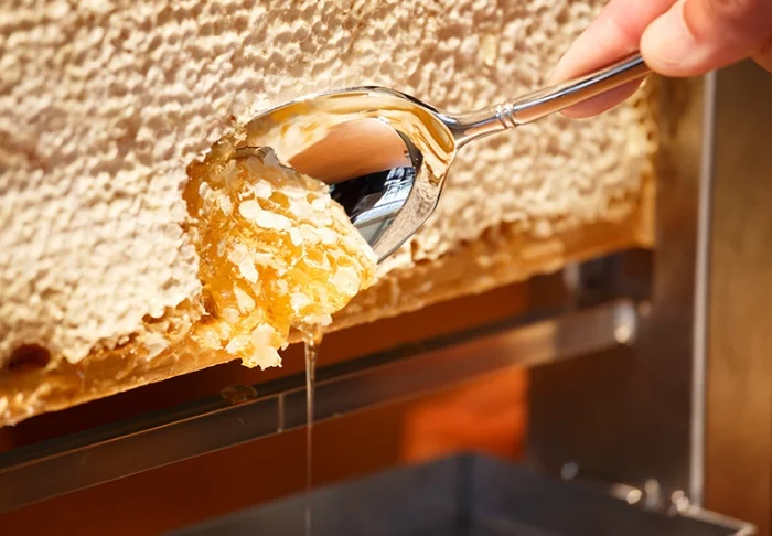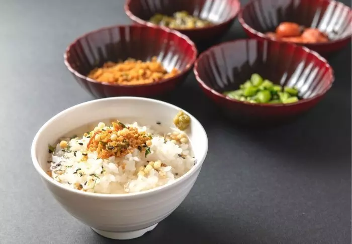 Das Restaurant Noukabanzai Mantei hat morgens und abends geöffnet. In diesem wird das Essen noch auf traditionelle Weise, wie es in den nahegelegenen Provinzen Kaga und Noto üblich ist, zubereitet. Und auch Gemüse, Fleisch und Gewürze stammen aus diesen Regionen. Vom Restaurant aus können Sie den wunderschönen Zen-Garten mit Steinen, Kies, Büschen und Bäumen bewundern.