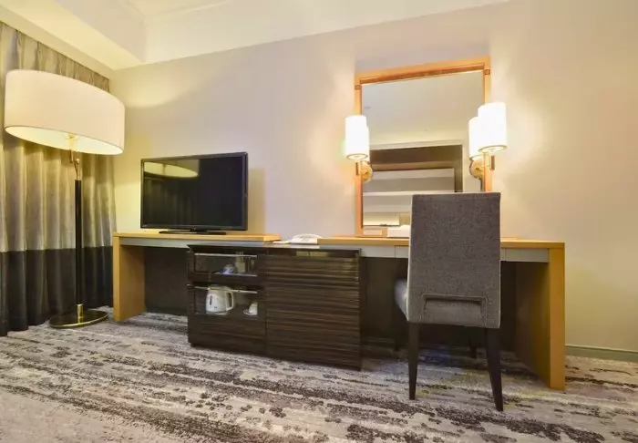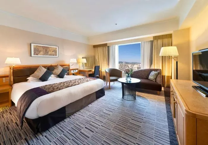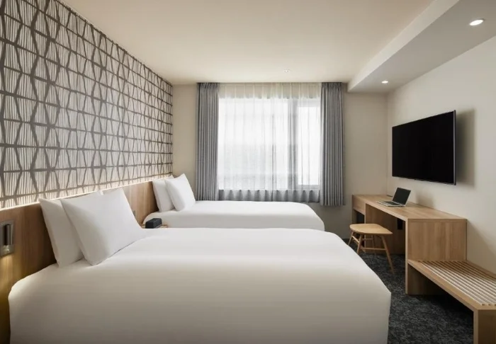 Das 21-stöckige Hotel verfügt über 304 Zimmer, die einen schönen Blick auf die Stadt bieten. Alle Zimmer sind in ruhigen, hellen Farben gehalten und mit modernen Annehmlichkeiten ausgestattet, um einen angenehmen Aufenthalt zu gewährleisten. Alle Zimmer verfügen über kostenlosen WLAN-Zugang, eine Klimaanlage, einen Safe, einen Minikühlschrank, einen Wasserkocher für Tee und Kaffee sowie einen Flachbildfernseher mit Zugang zu verschiedenen Streaming-Diensten. Die Betten sind bequem, und es gibt sowohl weiche als auch feste Kissen, um Ihre persönlichen Vorlieben für einen guten Schlaf zu erfüllen. Auch die Badezimmer sind modern und mit Regenduschen, Toilettenartikeln und Haartrocknern ausgestattet.