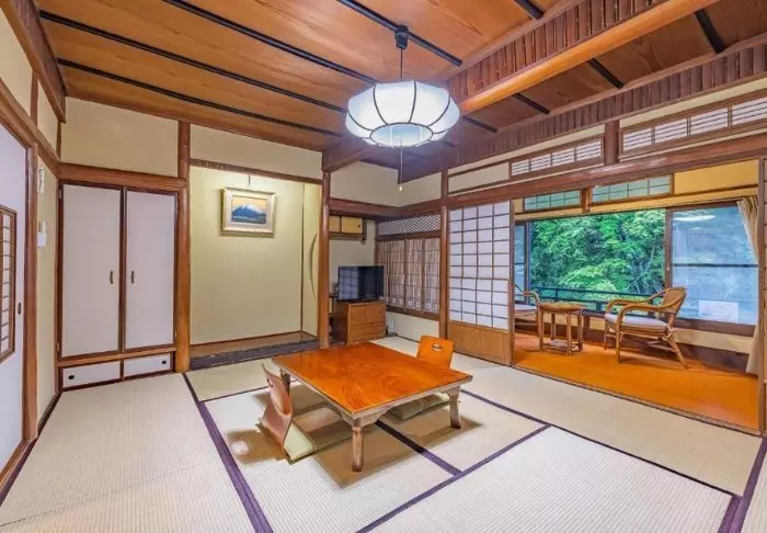 Das Ichinoyu Honkan hat insgesamt 22 Zimmer, traditionell eingerichtet mit Tatami-Matten, das sind klassische japanische Matten aus Reisstroh. Die Tatami-Matten haben besondere Temperatureigenschaften, die bewirken, dass sie im Sommer kühlen und im Winter wärmen. Die Zimmer sind auch mit den traditionellen japanischen Shoji-Schiebetüren eingerichtet, die aus Reispapier auf einem Holzrahmen bestehen. Das Reispapier ist zwar so dünn, dass es für Helligkeit im Zimmer sorgt, aber es ist gleichwohl nicht durchsichtig, wodurch die Privatheit gewahrt bleibt.