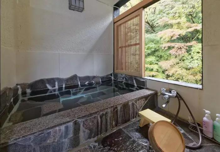 Am Ufer des Flusses Hayakawa in Hakone befindet sich dieses alte Ryokan, Ichinoyu Honkan, aus dem Jahr 1630.