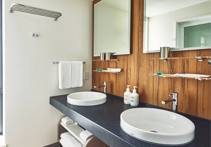 Sie übernachten in einem Standardzimmer mit heller, einladender Einrichtung und moderner Ausstattung. Jedes Zimmer verfügt über WLAN, Klimaanlage, TV, Safe, Minikühlschrank sowie einen Wasserkocher für Tee und Kaffee. Auf dem Flur steht Ihnen außerdem ein Wasserspender mit gefiltertem Wasser zur Verfügung. Die Betten sind auf höchsten Komfort ausgelegt, und Sie können zwischen weichen und festen Kissen für einen erholsamen Schlaf wählen. Das Badezimmer ist mit einem Washlet-WC, einem Haartrockner, kostenlosen Pflegeartikeln sowie einer separaten Dusche mit Regenduschkopf ausgestattet.