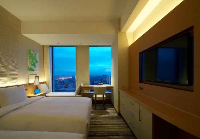 Zu den größten Highlights des Nagoya JR Gate Tower Hotels zählt zweifellos der atemberaubende Blick über Nagoya, der Sie im gesamten Hotel begleitet. Hier spüren Sie das pulsierende Stadtleben, während sich der Alltag unter Ihnen entfaltet und Shinkansen-Züge in rasanter Geschwindigkeit vorbeigleiten. Zudem können Sie im modernen Fitnessraum, der rund um die Uhr geöffnet ist, aktiv bleiben.