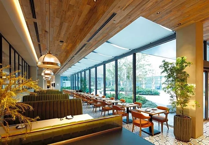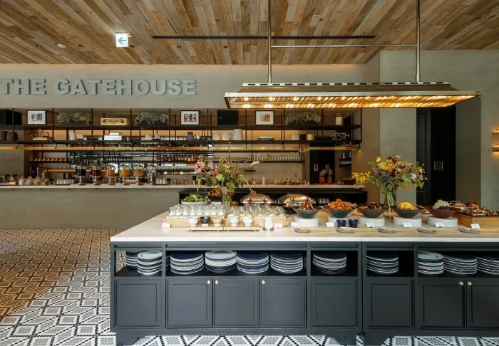 Ihr Aufenthalt beinhaltet ein luxuriöses Frühstücksbuffet im Restaurant The Gate House, wo japanische und westliche Spezialitäten aus sorgfältig ausgewählten regionalen Zutaten zubereitet werden. Außerdem finden Sie hier einen professionellen Barista, der frische Café Lattes aus frisch gerösteten Bohnen zubereitet. Das Restaurant steht unter der Leitung des Küchenchefs des renommierten *L’AS* in Tokio und garantiert Ihnen so einen außergewöhnlichen Start in den Tag. Wenn es das Wetter zulässt, können Sie sogar auf die stilvolle Dachterrasse des Restaurants hinausgehen und Ihre Mahlzeit im Freien genießen.