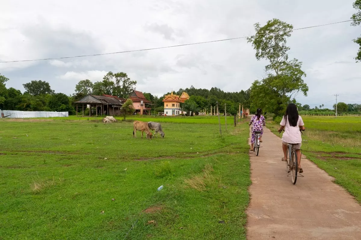 Alles ist ruhig und still um Sie. Sie können die grüne Landschaft, die exotischen Obstbäume und Palmen mit Mangos, Jackfrucht und Bananen sowie die Felder und Wiesen mit grasenden Rindern genießen. Auf dem völlig flachen Radweg fahren Sie 9 km um die ganze Insel. Unterwegs kommen Sie an einer kleinen Pagode vorbei. In den umliegenden hohen Bäumen können Sie mit etwas Glück große Schwärme an Fledermäusen von den Bäumen hängen sehen. Unterwegs halten Sie nach Lust und Laune an. Es ist leicht, mit den Einheimischen Kontakt aufzunehmen. Sie sind sehr freundlich, lächeln und winken, wenn Sie mit dem Rad vorbeikommen. Wenn Sie Glück haben, werden Sie bei einer der einheimischen Familien zu einer Tasse Tee oder Kaffee eingeladen. Sie fahren zum nördlichen Teil der Insel, wo Sie ein kleines Dorf besuchen. Dort erhalten Sie einen Einblick in das Leben hier auf Koh Trong. Auch frisches Obst wird Ihnen angeboten. Danach nehmen Sie an einem Aufforstungsprojekt teil, welches sowohl dem Klima, der Artenvielfalt und dem Dorf hilft. Schließlich können Sie noch die letzte Nachmittagssonne über dem Fluss Mekong genießen.