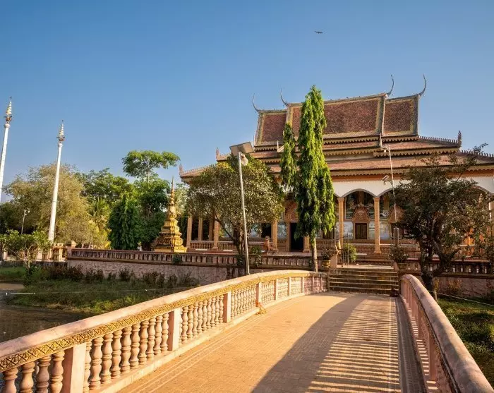 Nach dem Mittagessen geht es weiter zu einem nahegelegenen buddhistischen Tempel. Hier werden Sie einen traditionellen Khmer-Gottesdienst beobachten, der von einem buddhistischen Mönch durchgeführt wird. Er bietet Ihnen einen einzigartigen Einblick in die lokalen religiösen Praktiken und den Glauben der Einheimischen.