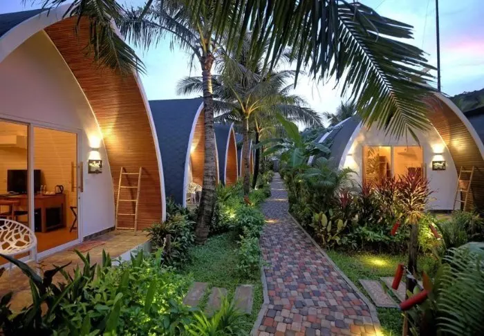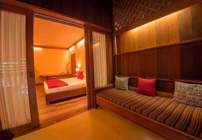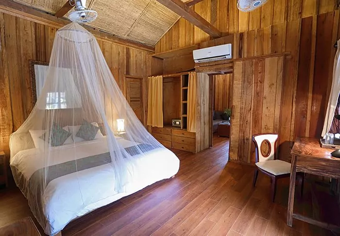 In jedem kleinen Haus gibt es 1-2 eigene geräumige Zimmer (mind. 30 m²) mit eigenem Eingang. Die Zimmer besitzen einen kleinen Balkon oder eine Terrasse und sind mit einem Schreibtisch, Deckenventilator, Bademantel, Hausschuhen, Moskitonetz sowie mit einem Bad- und Toilettenbereich ausgestattet. Föhns können an der Rezeption geliehen werden, das WLAN ist gratis.