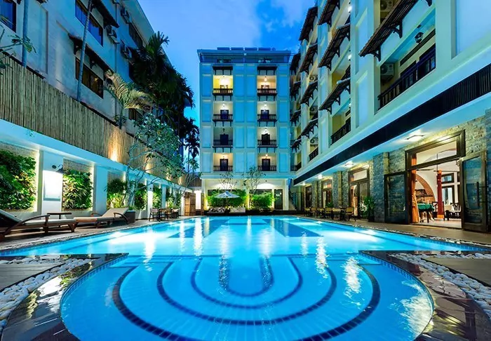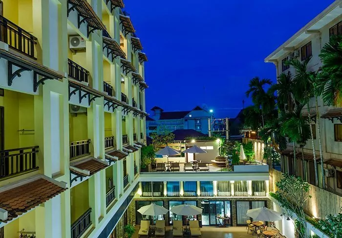 Das Hotel liegt im Zentrum von Siem Reap, unweit vom Markt und dem Einkaufszentrum. Zum alten Markt Phsar Chas, der Straße mit den Kneipen und dem Nachtmarkt benötigt man zu Fuß nur 10 Minuten. Die Tempelanlage Angkor Wat erreicht man in 15 Minuten mit dem Auto.