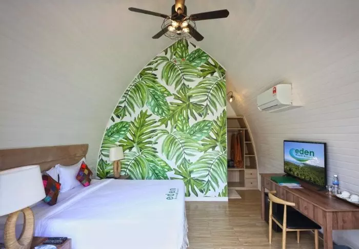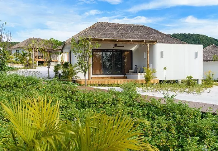 Die 33 Bungalows des Resorts sind hell und geschmackvoll mit nachhaltigen Materialien dekoriert. Sie sind mit Klimaanlage, Deckenventilator, Minibar, WLAN, Möglichkeiten zum Tee- und Kaffeekochen, TV und Kühlschrank ausgestattet. Eine Schiebetür öffnet sich zu einem privaten Balkon mit Tisch und Stühlen, wo Sie die Ruhe und die üppig grüne Umgebung genießen können. Zur Ausstattung der Badezimmer gehören eine Dusche, ein Haartrockner und Pflegeprodukte, die das Erlebnis von Komfort abrunden.