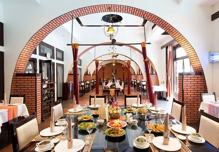 Im Restaurant des Hotels mit Aussicht auf den Swimmingpool werden morgens, mittags und abends sowohl asiatische als auch westliche Gericht serviert.