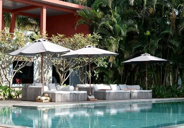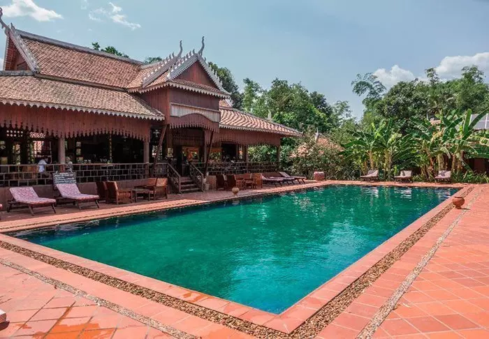 Zum Steung Siemreap gehört zudem ein herrlicher Poolbereich mit Palmen und tropischen Bäumen, in dem man sowohl Liegestühle als auch Sonnenschirme nutzen kann.