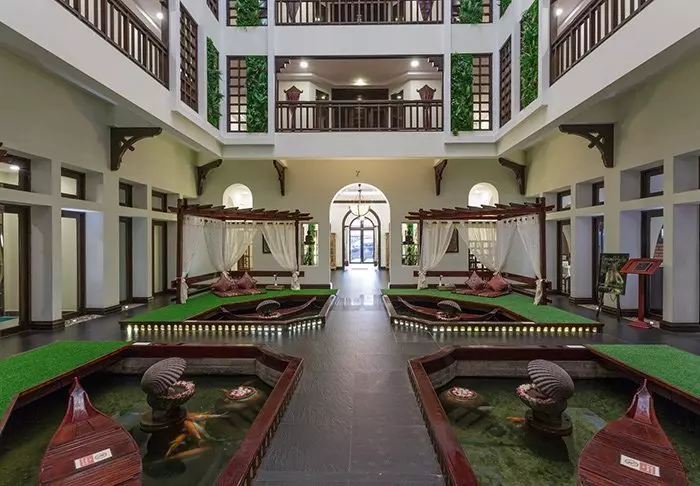 Das Hotel ist modern und hell, mit kleinen rustikalen Elementen eingerichtet. Beachten Sie besonders die verschnörkelte Treppe, die Säulen und die Wände. An mehreren Stellen gibt es im Hotel kleine gemütliche Ecken, in denen Sie sich mit einem guten Buch entspannen können.