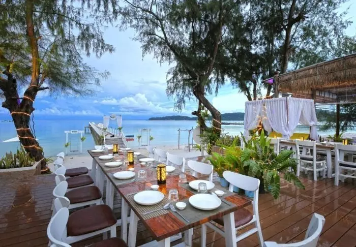 Nach Koh Touch sind es 11 km. Dort gibt es mehrere verschiedene Restaurants und Strandbars. Um dorthin zu gelangen, muss man allerdings eine 25-minütige Reise mit dem Taxi und Boot unternehmen, was am besten bei Tageslicht ist.