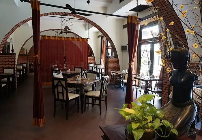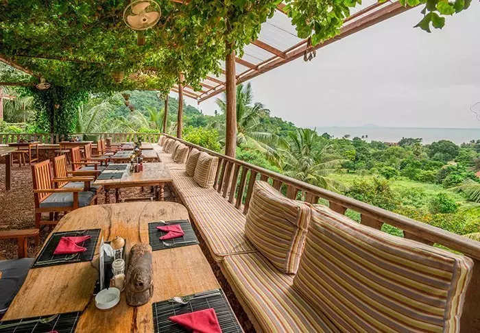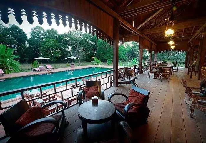 Auf der überdachten Terrasse mit Aussicht auf den Garten und den Swimmingpool befindet sich das gemütliche Restaurant. Dort werden morgens, mittags und abends leckere Gerichte aus der kambodschanischen und internationalen Küche gezaubert. Auch eine wirklich gute Weinkarte gibt es.