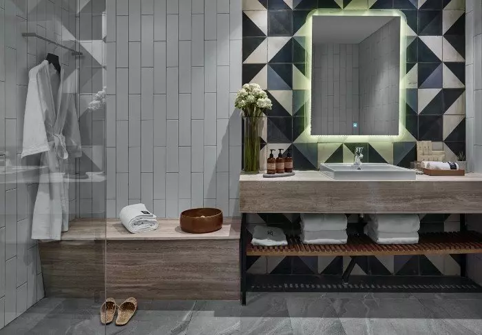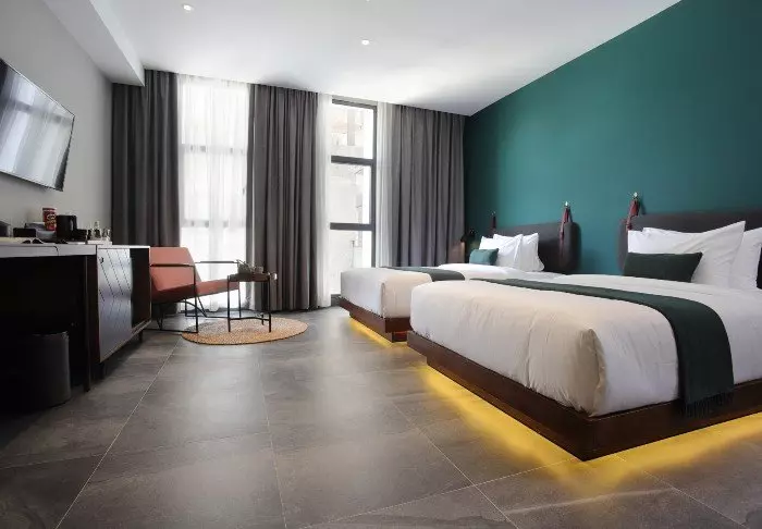 Das rustikale und moderne Design zieht sich durch alle Räume, die wirklich einladend und gemütlich sowie in warmen Farben eingerichtet sind. Alle 105 Zimmer sind mit Klimaanlage, WLAN, Minibar, Safe und Wasserkocher ausgestattet, sodass Sie sich jederzeit eine Tasse Tee oder Kaffee machen können. Im Badezimmer finden Sie Bademäntel, Hausschuhe, Toilettenartikel und einen Föhn.