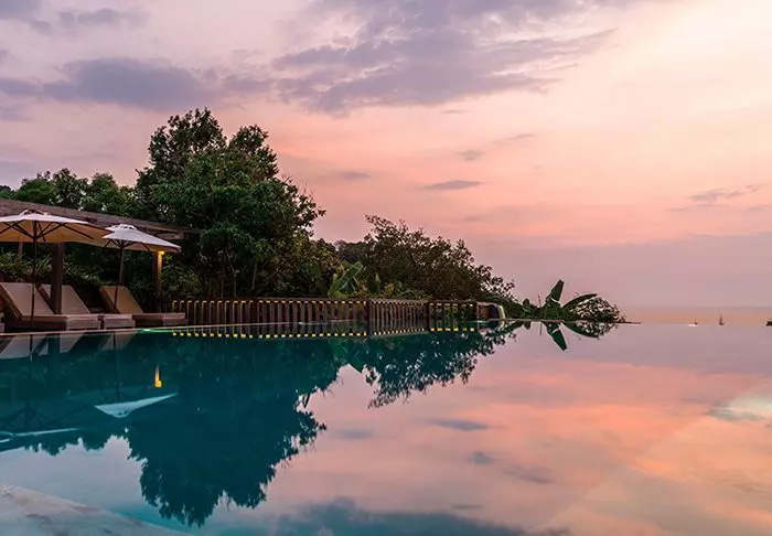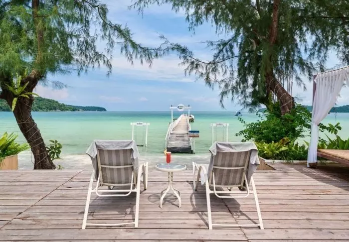 Direkt an der Küste, im gemütlichen und luxuriösen Hotel Knai Bang Chatt, finden Sie asiatische minimalistische Eleganz. Das Hotel bietet lediglich 18 Zimmer und strahlt Ruhe und Frieden aus, obwohl es nur 5 Gehminuten vom Krabbenmarkt in Kep entfernt ist.