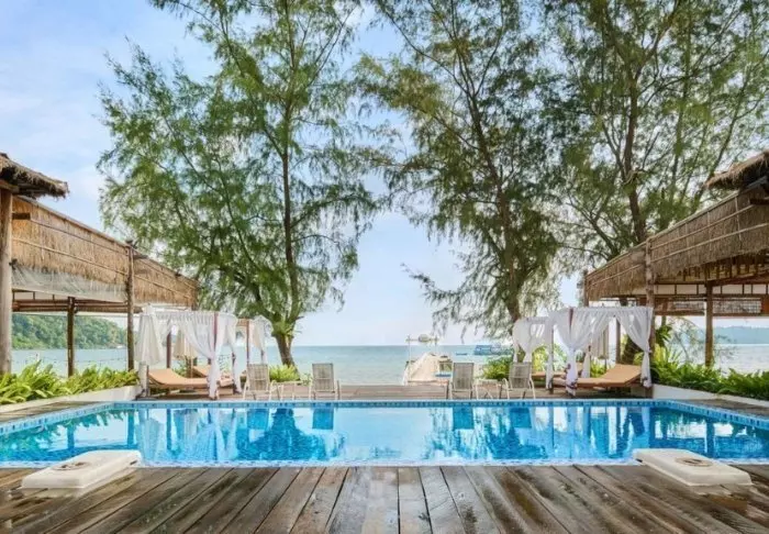Direkt am Strand an der ruhigen Südwestseite der Insel Koh Rong befindet sich das herrliche Sok San Beach Resort. Hier verbringt man seine Zeit am Strand mit Sand zwischen den Zehen, und zwar am schönsten Strand der Insel, dem Long Beach, auch genannt Sok San Beach. Das Resort bietet 98 Zimmer und Bungalows.