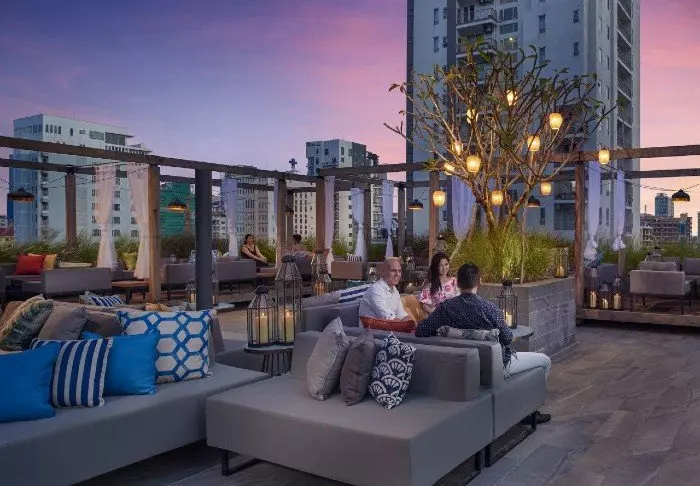 Gegen Ende des Tages können Sie die gemütliche und stimmungsvolle Rooftop-Bar „Lantern Bar“ besuchen. Die Bar bietet eine wunderschöne Aussicht über die Stadt und – wie der Name bereits sagt – unzählige Laternen und Kerzen. Genießen Sie einen Cocktail oder ein Glas Wein, während die Sonne über den Hochhäusern von Phnom Pen untergeht. Zu diesem Zeitpunkt wird die Dachterrasse dann vom Schein der Laternen erhellt, während die Musik sanft im Hintergrund zu hören ist.