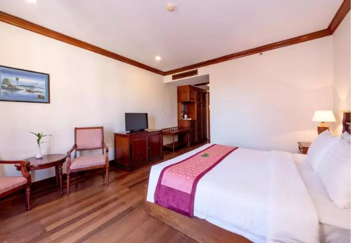 Das Baitong Hotel & Resort ist wahrlich eine Oase im Herzen von Phnom Penh. Vom Hotel aus können die Sehenswürdigkeiten der Stadt gut zu Fuß erreicht werden. Dazu zählen die Silberpagode und der Tempel Wat Phnom sowie der Nachtmarkt der Stadt und das ikonische gelbe Gebäude, in dem sich der Central Market befindet. Unweit vom Hotel ist auch das Flussufer, an dem immer etwas los ist. Hier treffen die Flüsse Mekong und Tonle Sap aufeinander.