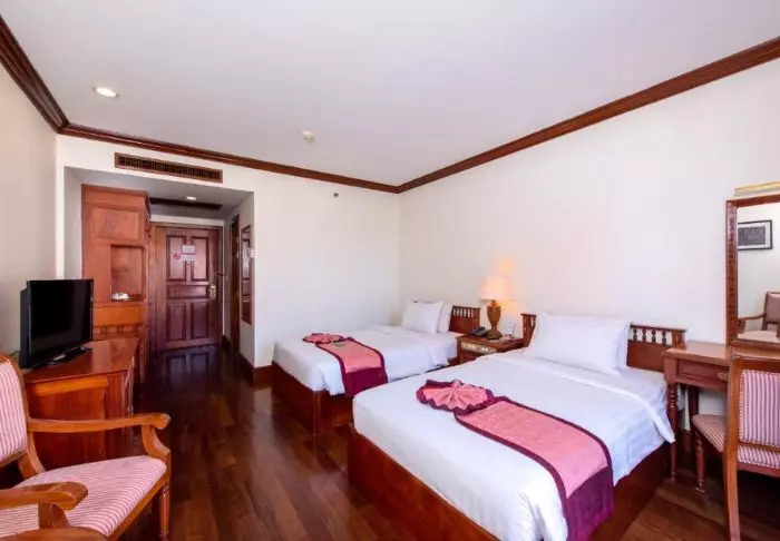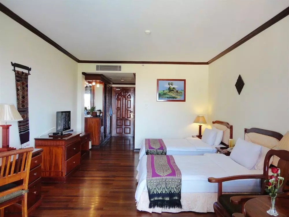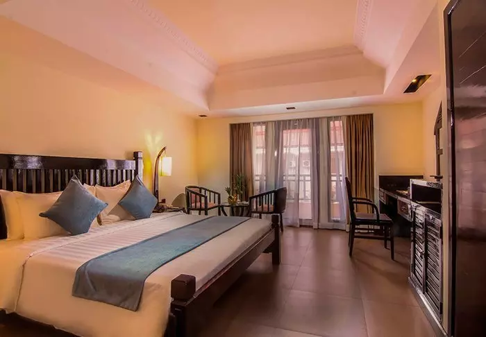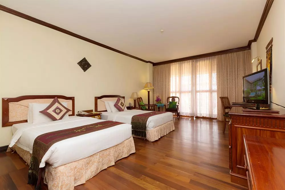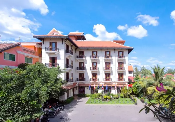 Das Steung Siemreap eröffnete bereits Anfang der 1920er-Jahre. Seither wurde es mehrfach renoviert. Aus Respekt hat man sich dabei entschieden, den ursprünglichen, französischen Kolonialstil zu erhalten. Das Hotel besteht heute aus 76 eleganten Zimmern, die alle mit wunderschönen Holzmöbeln, polierten Holzböden, schalldichten, französischen Fenstern und Schmiedeeisen-Balkonen ausgestattet sind. Sämtliche Zimmer verfügen über WLAN, Klimaanlage, Minibar, TV-Gerät, Telefon, Safe und eine Kaffee- und Tee-Ecke, und das Badezimmer bietet Badewanne, Toilettenartikel, Föhn, Bademäntel und Hausschuhe.