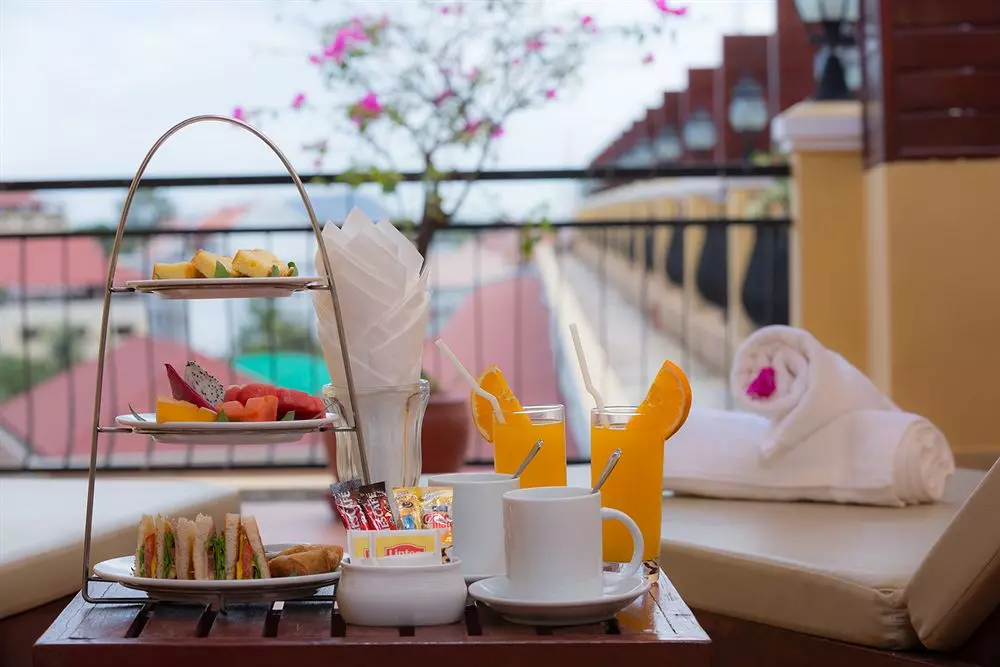 Unter Tags können Sie sich auf den Sonnenliegen am Strand entspannen und ein erfrischendes Getränk an der Strandbar Coconut Beach Bar genießen. Am Abend können Sie den Sonnenuntergang von der Sun Deck Beach Bar aus bewundern. Das Restaurant, das ebenfalls am Strand liegt, hat sowohl morgens als auch mittags und abends geöffnet. Hier wird eine große Auswahl an asiatischen, internationalen und Khmer-Gerichten serviert. Außerhalb der Öffnungszeiten des Restaurants können Sie an der Bar einen Snack bekommen.