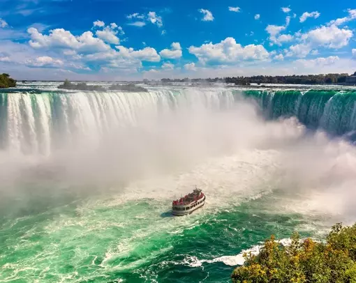 Darüber hinaus erwartet Sie ein Tag im Zeichen der Wassermassen: eine geführte Tour zu den Niagarafällen und Zeit dort zur freien Verfügung, ganz abgesehen von einer Bootsfahrt in unmittelbare Nähe der rauschenden Wasserfälle. Die Rückfahrt führt durch das reizende Niagara-On-The-Lake, das für seinen regional hergestellten Eiswein der vielen Weinanbaugebiete in der Region bekannt ist. Ihr Guide sorgt für den Transport der gesamten Gruppe von und nach Toronto und Sie brauchen sich nur noch entspannt zurückzulehnen und die Natur auf sich wirken zu lassen.