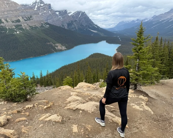 Verlassen Sie Banff schon früh, um genügend Zeit für die heutige Strecke und eine der schönsten Straßen der Welt zu haben: den Icefields Parkway. Es ist der Highway 93 North, der nach dem größten Gletscher in den kanadischen Rockies, Columbia Icefields benannt wurde. Der Icefields Parkway ist eine 230 km lange Gebirgsstraße, die fast parallel mit dem Gletscher durch die kanadischen Rockies führt. Müssen wir noch mehr sagen? Halten Sie an einem der schönste Seen unterwegs an, dem Peyto Lake. Von dem Parkplatz laufen Sie etwa eine Viertelstunde bis zu dem ikonischen Aussichtspunkt auf den See.