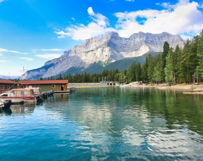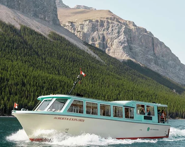Machen Sie einen stimmungsvollen Bootsausflug auf dem Lake Minnewanka, dem größten See im Banff Nationalpark und ein echtes Naturparadies inmitten majestätischer Berge.
