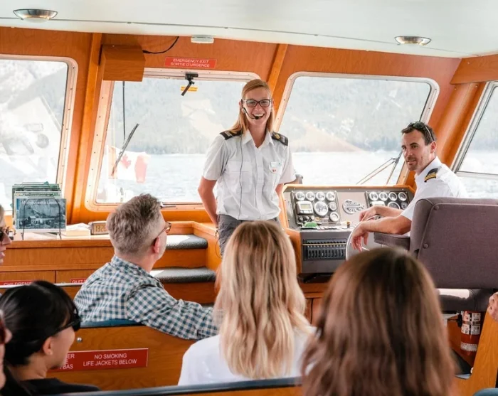 Sie gleiten ruhig durch die imposante Landschaft, während die erfahrene Crew von der interessanten Geschichte, lokalen Mythen und Volksglauben, wie auch von der Geologie des Gebietes berichtet. Unterwegs haben Sie die Möglichkeit, ganz einmalige Fotos zu machen, die Sie sonst nirgends und auch nicht vom Ufer aus machen können und Sie können die Ruhe und frische Bergluft mitten in der wilden Natur der kanadischen Rockies in vollen Zügen einatmen. Mit etwas Glück erhaschen Sie vielleicht auch einen Blick auf einige Tiere des Nationalparks am Ufer oder an den Berghängen.