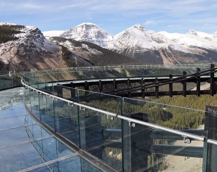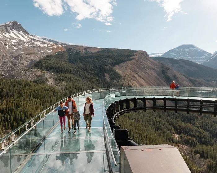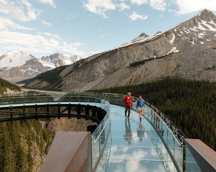 Ausgangspunkt ist das Columbia Icefield Discovery Centre, von dem aus ein Bus Sie zum Aussichtspunkt bringt. Dort erwartet Sie die 1 Kilometer lange Fußgängerbrücke, die direkt von der Felswand hinaus gebaut wurde. Sie gehen ganz in Ihrem Tempo und können interessante Ausstellungen zur Geologie, zur Tierwelt und Geschichte der Gegend erkunden.