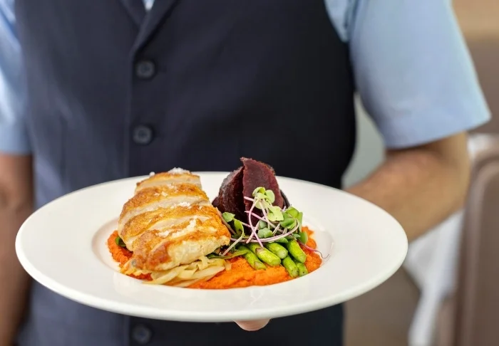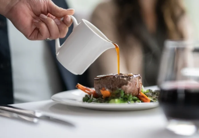 - An Ihrem Platz servierte Feinschmeckermahlzeiten