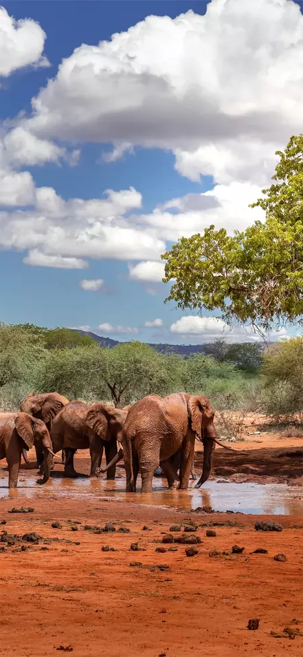 Die roten Elefanten im Park (sie bekommen ihre rote Färbung durch den Boden) sind für viele ein absolutes Highlight. Tatsächlich kann Tsavo die größte Elefantenpopulation in ganz Kenia vorweisen – geschätzt auf etwa 15.000 Tiere.