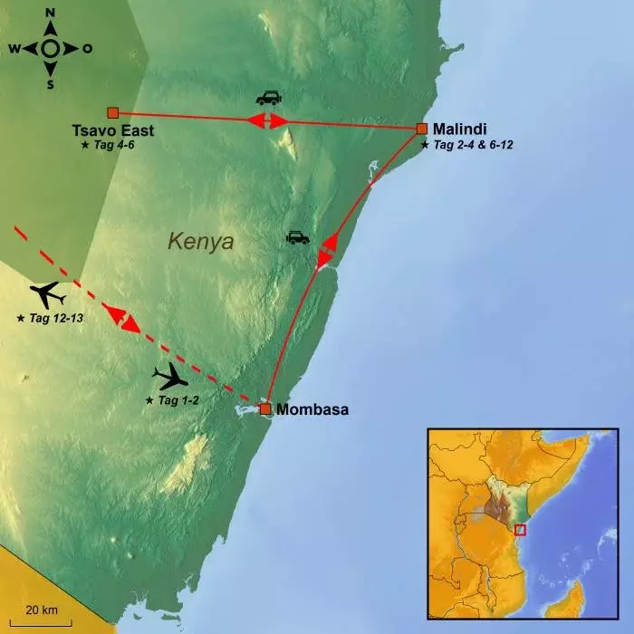 Von Malindi führt die Reise in den größten Nationalpark Kenias, Tsavo East.