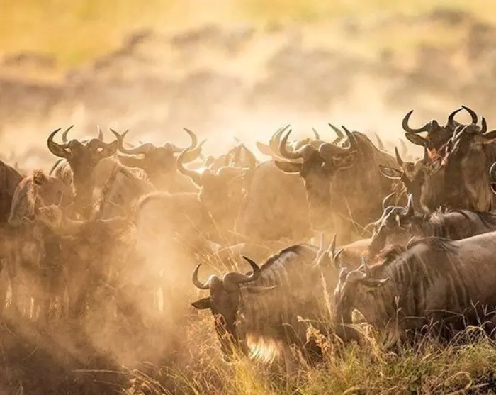 Von Juli bis Oktober kann man die 1.200 km lange Wanderung der über eine Million Gnus und der Hunderttausenden an Zebras sowie jede Menge Thompsongazellen auf der Suche nach Wasser und frischem Gras bestaunen. Während dieser Wanderung fallen viele den enormen Nilkrokodilen zum Opfer, wenn sie den Mara River überqueren.