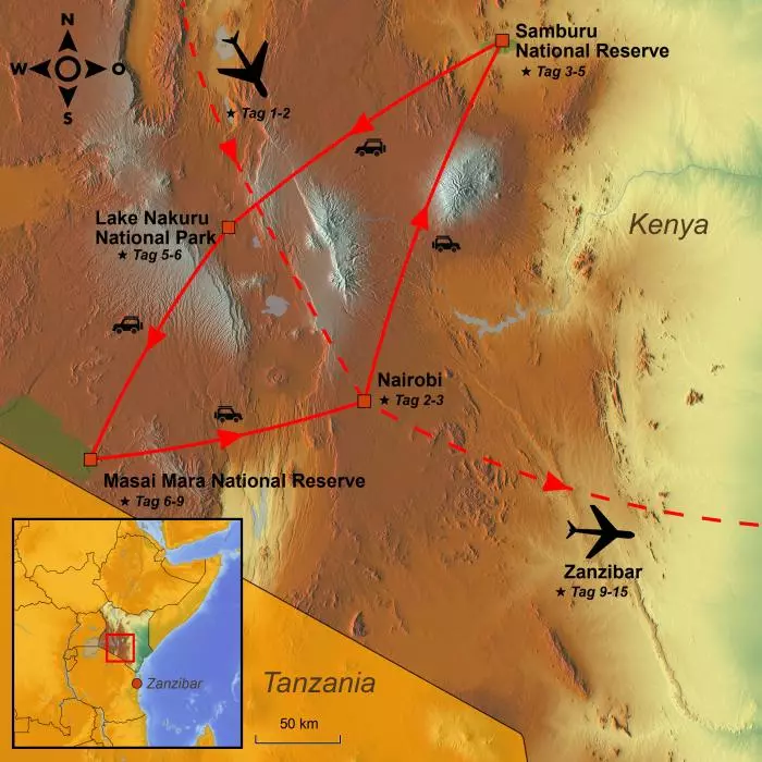 Erleben Sie das Beste von Kenia. Wundervolle Natur und ein einzigartiges Tierreich. Ihre Erlebnisse können Sie dann an den weißen Sandstränden Sansibars Revue passieren lassen.