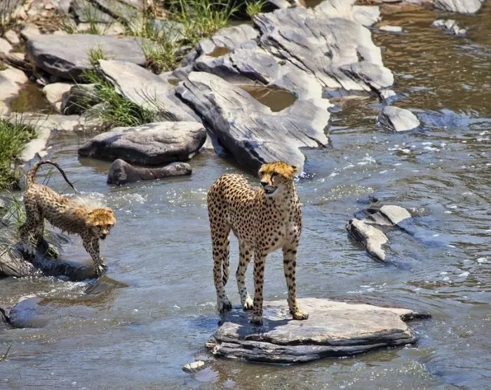 Die Fahrt von Amboseli zum Lake Naivasha führt durch atemberaubende Landschaften. Der Lake Naivasha ist für seine Nilpferde und seine vielfältige Vogelwelt bekannt. Im weltberühmten Nationalreservat Masai Mara sind natürlich die Big 5 die große Attraktion – zusammen mit allen Arten von Beutetieren. Es gibt auch die Möglichkeit, die hoch gewachsenen, rot gekleideten Maasai in ihren Dörfern zu besuchen.