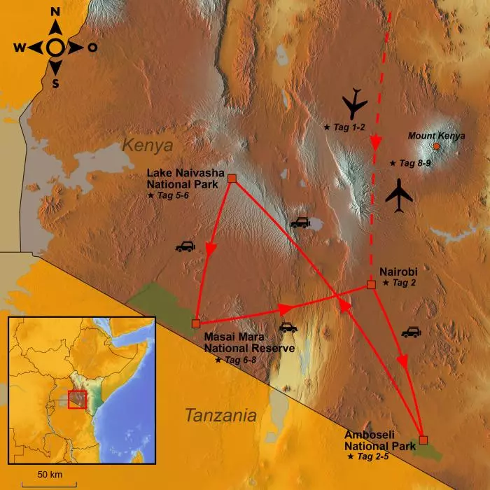 Bei dieser Reise erleben Sie die größten Highlights Kenias: Amboseli-Nationalpark, Lake Naivasha und Masai Mara. Die Reise endet mit einem entspannenden Badeurlaub auf der exotischen Insel Sansibar.