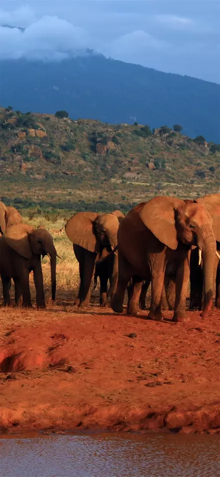 Tsavo besteht eigentlich aus zwei Nationalparks, Tsavo East und Tsavo West, wobei East der größere ist. Die Landschaft ist hier flach und trocken, geprägt von dem roten Boden, der den Elefanten nach einem Schlamm- oder Staubbad eine rötliche Tönung verleiht. Und es gibt viele Elefanten, rund 15.000. Neben Elefanten beherbergt Tsavo East auch Löwen, Büffel, Leoparden, Flusspferde und viele weitere Tiere. Im Park sind zudem 500 Vogelarten verzeichnet.