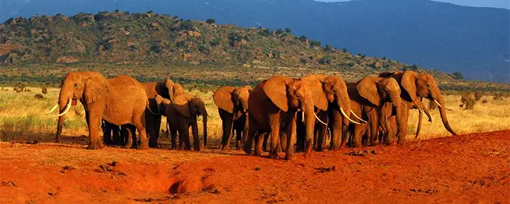 Unterwegs, von Nairobi nach Mombasa, halten Sie für drei Nächte im größten Nationalpark Kenias, Tsavo, mit ausreichend Zeit für Pirschfahrten und um die beeindruckende Natur zu genießen.