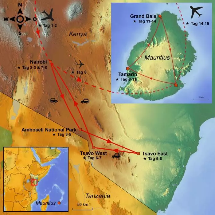 Nach einer Reise voller Abenteuer nach Kenia und Mauritius landen Sie an Ihrem gewählten Flughafen.