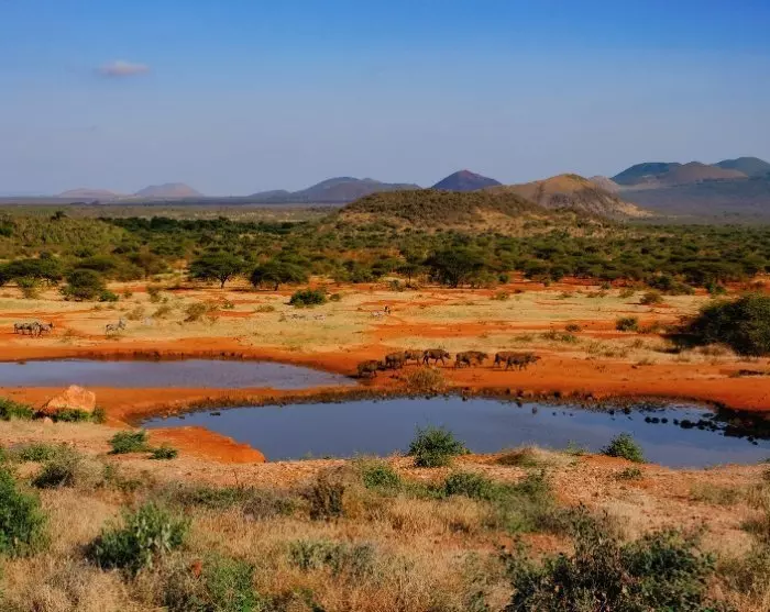 Wo Amboseli klein ist, ist Tsavo groß. Tatsächlich ist es Kenias größter Nationalpark. Er besteht aus zwei Teilen, Tsavo East und Tsavo West, und Sie werden beide auf dieser Reise besuchen. Freuen Sie sich auf rötliche Elefanten im trockenen Tsavo East und üppige Landschaften und Quellen in Tsavo West.