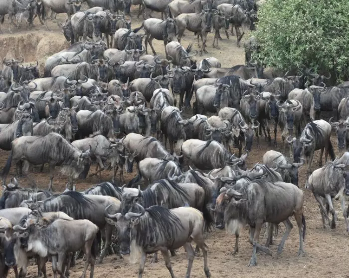 In den nächsten Tagen erleben Sie jede Menge Tiere hautnah von dem schützenden Jeep aus. Von Juli bis Oktober kann man die 1.200 km lange Wanderung der über eine Million Gnus und der Hunderttausenden an Zebras sowie jede Menge Thompsongazellen auf der kenianischen Seite der Great Migration bestaunen. Während dieser Wanderung fallen viele den enormen Nilkrokodilen zum Opfer, wenn sie den Mara River durchqueren.