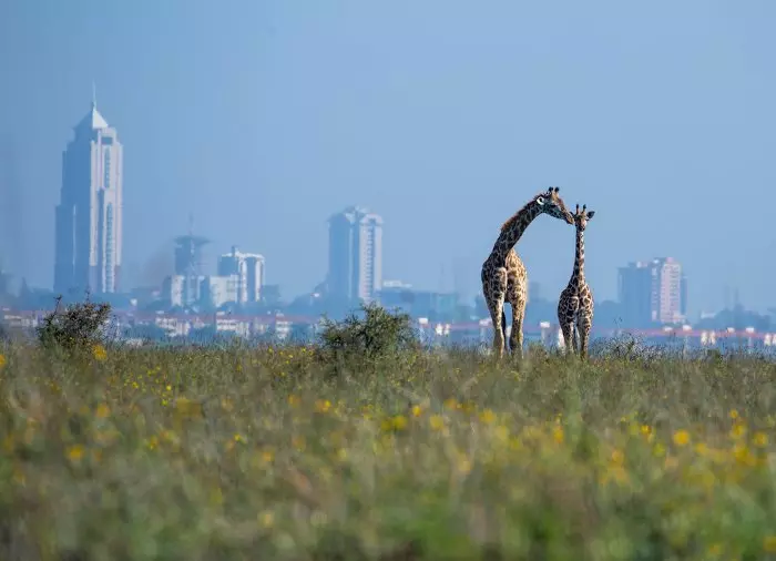Der allererste Nationalpark Kenias, der Nairobi-Nationalpark, wurde 1946 gegründet, um die Wildtiere vor der rasch wachsenden Stadt zu schützen. Das Gebiet ist heute mehr als 100 km2 groß. Mit den Wolkenkratzern Nairobis im Hintergrund werden die Safarierlebnisse zu etwas ganz Besonderem.