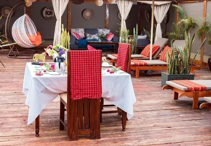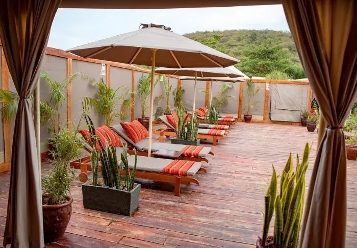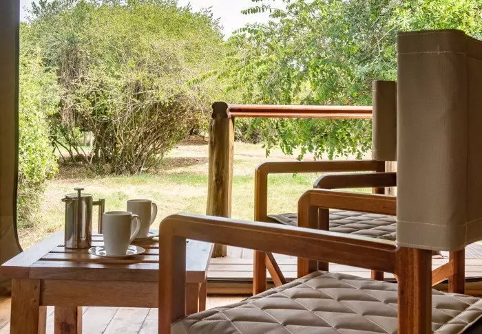 Alle Zelte besitzen eine eigene Veranda mit Stühlen und Tischen – der perfekte Ort, um mittags mit einem guten Buch zu entspannen.