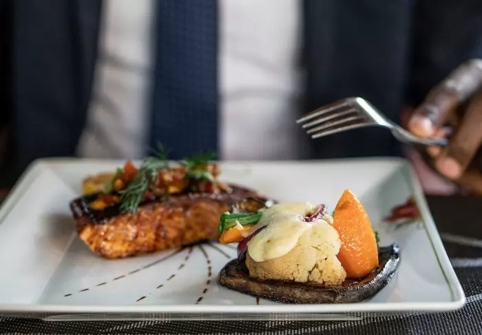 Die Mahlzeit genießen Sie im Restaurant. Ein Großteil des Gemüses wird regional angebaut. Sämtliche Gerichte werden frisch zubereitet.